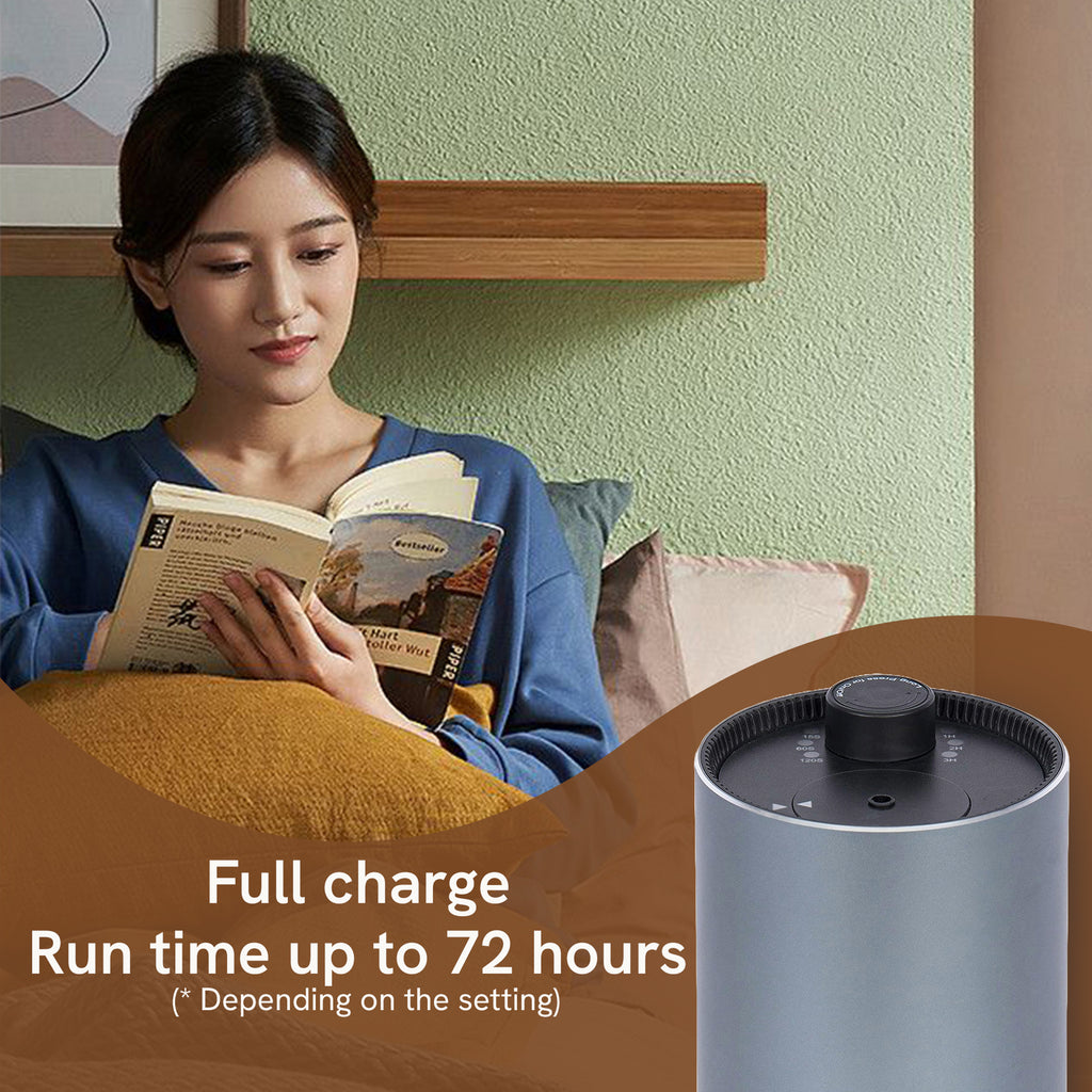BlueHills Waterless diffusers give you the option of saturating any room with the untouched quality aroma of essential oils without using water. We chose cold diffusion technology to transform essential oils into micro-fine vapor or particles as small as 1-3 microns without the need for heat or water. Instead, essential oil is dispersed into the air as extremely tiny particles emitted by a diffuser. When fully charged, this nebulizer aroma diffuser produces an intermittent mist for a long time. An elegant and smart way to create a calming ambiance in your kids' room, kitchen, living area, home, car or office. In addition, it is a portable diffuser, which is one of the needed car travel essentials. This cordless diffuser is a great way to add soothing fragrance to any space. This Mini Gray Diffuser’s minimalistic style allows it to blend into any décor and is suited for large rooms or any space. The Diffuser blends aromatherapy with home décor. You can use it as a room diffuser or as a decorative accessory. This battery powered rechargeable diffuser is designed to create a calm and soothing environment.